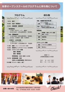 > 2024 秋季オープンスクール持ち物とプログラム