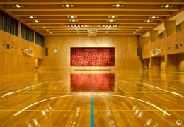 屋内球技や跳び箱やマット体操などの他、畳を敷きつめて、柔道場としても使用されます。また、講堂としての活用もあり、各種の行事や文化祭のステージ発表も行われます。