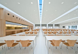 フォーコートには、受付や図書館があり、コモンズには、食堂と体育館があります。パビリオンは、校内唯一の木造建築で、茶室としても利用可能な、和室棟があります。また、グランドは、ナイター照明が取り付けられています。