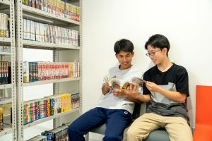 寮の中には居室の他、それぞれの階の両サイドに多目的室があります。ここで、お茶を飲んだり、おしゃべりをしたり、くつろいだ時間を過ごすことができます。また、防音室では、得意な楽器を奏でることもできます。