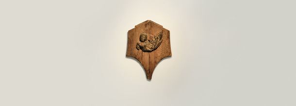 MIHO美学院の校章は、MIHO MUSEUMに所蔵されている美術品「飛天」からアイディアを得ています。このレリーフは、奈良の興福寺伝来のもので、平安時代の作といわれております。このレリーフの背板の飾り板に注目すると、美しく伸びた曲線と幾何学的な形状が、開いた本や万年筆の先を連想させます。また、この飾り板は懸魚と呼ばれ、神社仏閣の妻飾りであったことから、MIHO美学院での学びをサポートする学舎という印象を与えます。飾り板の中の飛天は、MIHO美学院における、上を目指す、天に届こうとする思いを表しており、空へと羽ばたく姿、または悟りを象徴し、それらはまさに生徒達の教育と結びつきます。この作品は元来、飛天像と背板が別々のものであったと言われておりますが、MIHO MUSEUM創立者であった小山美秀子師は、この飾り板と飛天の輝くばかりの取り合わせの妙、見立ての鋭い感性をこよなく愛されました。木の飾り板と飛天とが互いに引き立てあい、絶妙なバランスで調和しているこのレリーフは、美しい志を持った生徒たちが、素晴らしい環境の中で学ぶ姿を連想させます。そして、この美術品が表現する感性、高貴さは、師の美意識、その根底に流れるスピリチュアリティ―を体現しているといえましょう。MIHO美学院では、いくつもの候補の中から、美秀子師が愛された、この作品を校章のモチーフに採用しました。まさに、MIHO美学院の校是にふさわしい、象徴的な形であります。