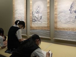 水の神であり、知識や芸術、豊穣の神様として日本各地に祀られ、特に滋賀県の琵琶湖に浮かぶ竹生島宝厳寺の弁財天は日本三大弁天として有名で、今回は3年生のMHO美学の授業でMIHO MUSEUMに所蔵されている弁財天の像や絵を間近で学びました。