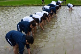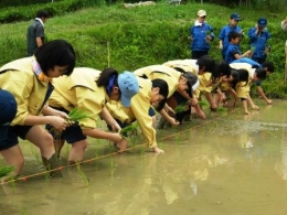 感謝の言葉を言いながら除草する生徒