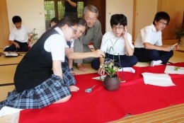 花器に野花を入れる生徒