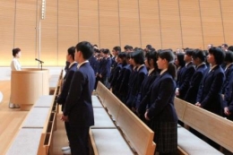 理事長先生のお言葉を聴く生徒