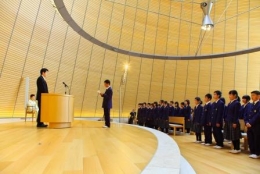 新入生代表挨拶を受ける新学院長