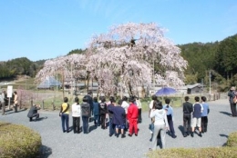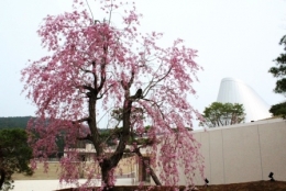 校舎棟前に移植されたしだれ桜