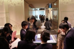 学芸員の話を聞き入る生徒