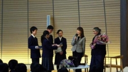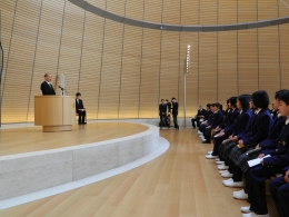 班ごとに分かれ、ガイドの方の説明を聞く生徒