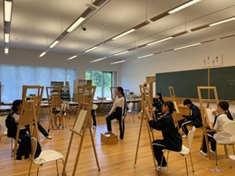 2年生の美術の授業で人物クロッキーをしました。交代交代でモデルをつとめ、様々なポーズの絵を描きました。