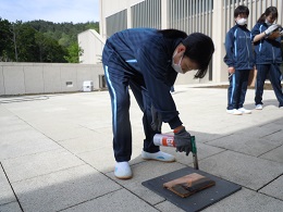 長年交流を続けている岡山県倉敷市真備町へ清掃奉仕や写真洗浄などのボランティア活動に有志生徒たちが参加しました。