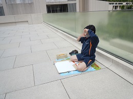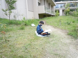2年生が校内に散らばり、自分のお気に入りの場所の風景画を描きました。