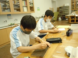 1年生が美術の授業で、自然農法のマイガーデンに立てる看板の制作を行いました。