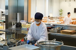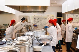 昼食後の全校生徒分の食器洗浄と片付け、その後、ジャガイモの皮むきの技能講習を服部クッキングの方より学びました。