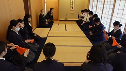 MIHO美学の授業の最終目標であるお茶会に向けて、武者小路千家の指導者よりお茶会の流れや袱紗さばきを教わりました。