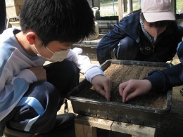 夏野菜の種を育苗箱に蒔く作業を行いました。