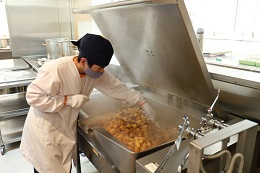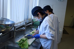 1年生の男子生徒が、食事作りの仕込み作業を行いました。