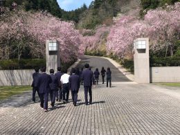枝垂れ桜が咲き誇るMIHO MUSEUMの休館日に、6年生が桜の鑑賞をしました。
