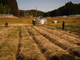 圃場の環境改善のために、溝を深く掘り、雨水を流れやすくする作業をしました。