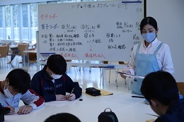 家庭科教員や管理栄養士の指導の下、食事作りの打合せが行われました。