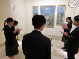 フレスコ画の前で作品解説をする生徒