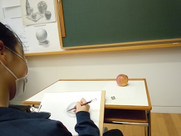 リンゴをモチーフにして鉛筆デッサンをしました。