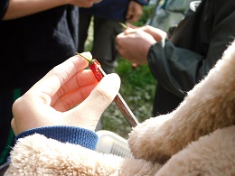 2年生が自然農法の時間で、大豆の収穫、サツマイモの土落し、ししとうの種取りの作業を行い、その間にサツマイモを焼き芋にして最後に美味しく頂きました。