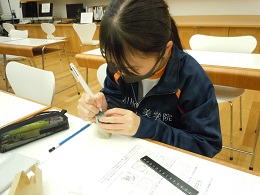 3年生が美術の時間で、デッサンの基礎になる鉛筆の濃淡のつけ方を学びました。