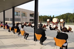 太鼓部の演奏を聴かれる見学会参加者の皆さま